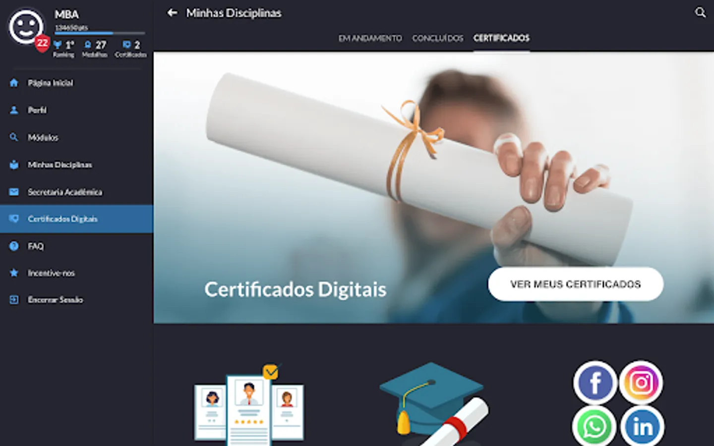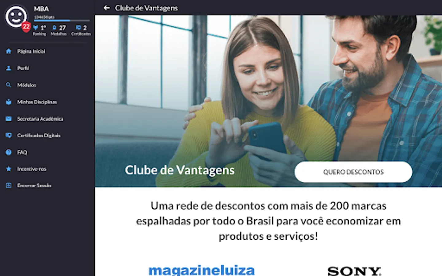- Learn even without internet: through offline mode, you download content and study even without a wi-fi network or when your data pack runs out.