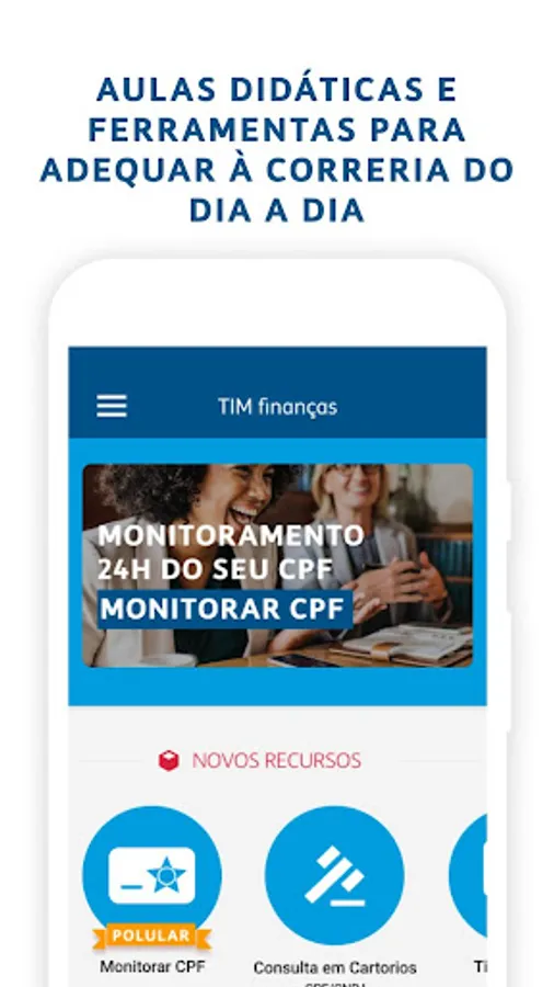 TIM Finanças also has exclusive resources for you to monitor your CPF, to know the currency quotation online, to ask questions with a specialist, in addition to receiving the digital certificate at the end of each course.