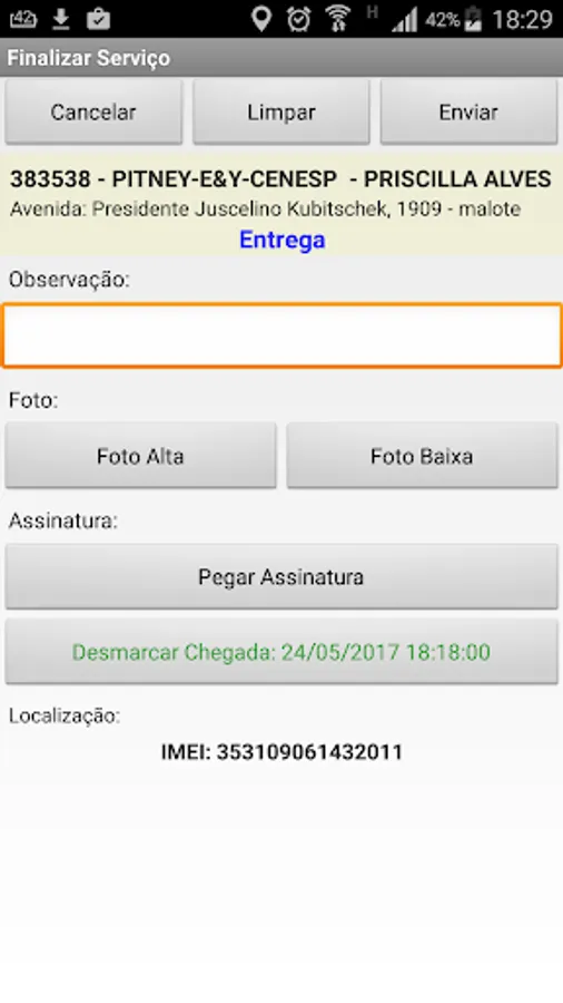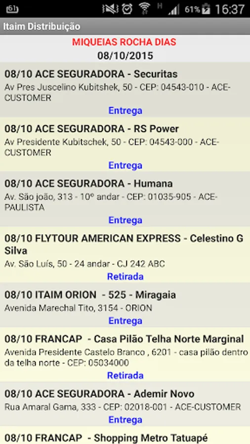 This application enables the person responsible for delivering receive on your cell the list of services to be made.