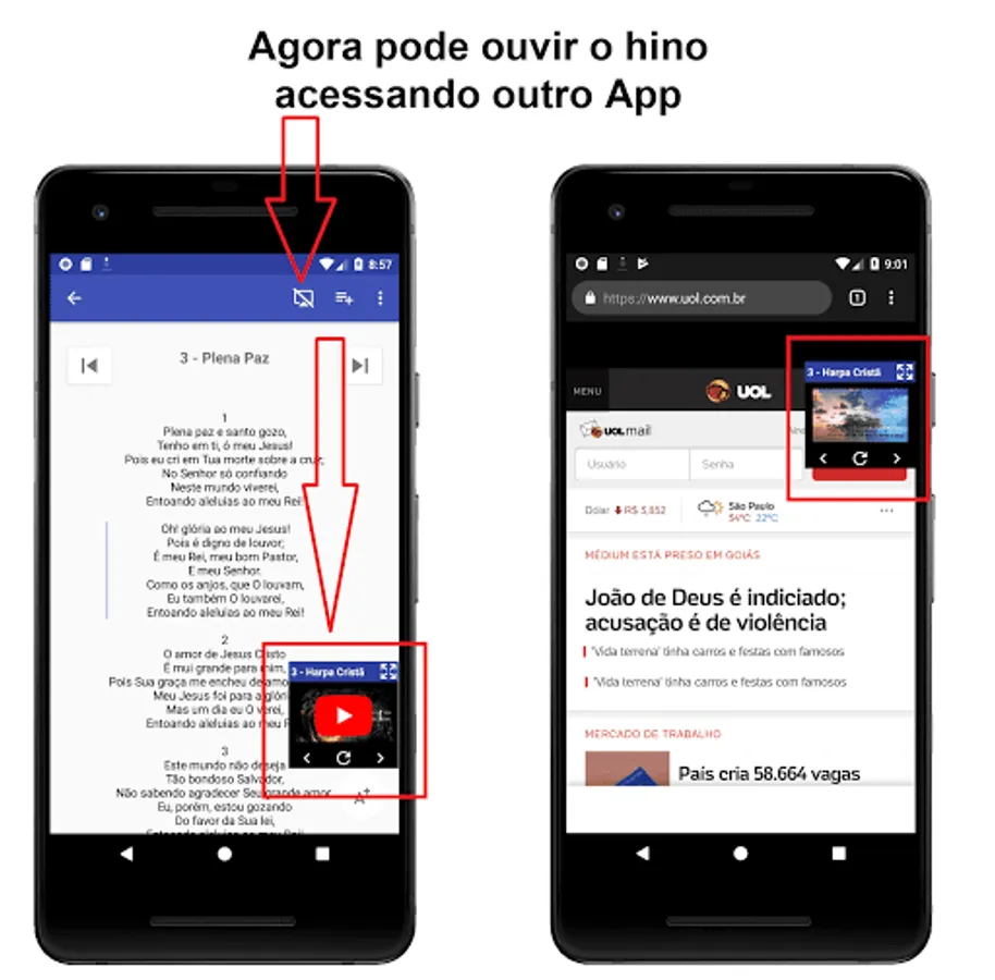 Now it's easy to learn to sing all the hymns of the Christian harp with video, because in addition to the hymns having the lyrics, there are YouTube videos when you are connected to wi-fi internet, and each hymn has different videos that you can select and watch yours. preferred video.
