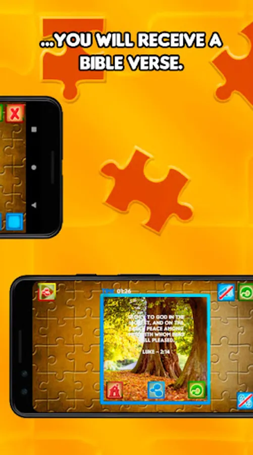 That's right! You have fun, and as you assemble the entire puzzle, you receive, as a reward, uplifting Bible messages.