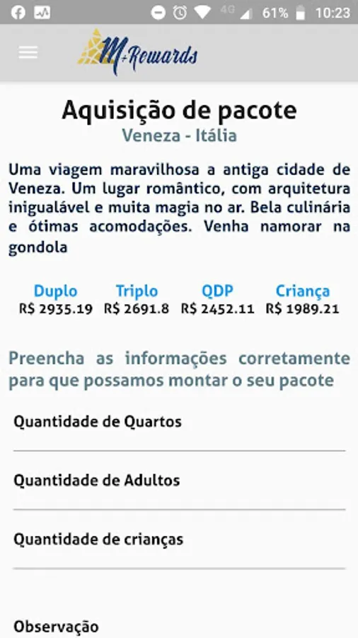 If you are a collaborator of a company registered with Mobai Viagens, you can have access to many promotions in travel packages for you and your family, through scores given by your company. M + Rewards is the bonus system for employees, tailored to your company and employees!