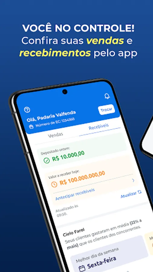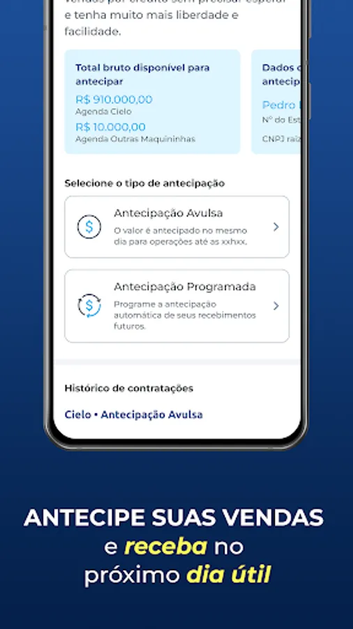 You can sell in installments and anticipate the receipt of your sales made on credit in your card machine. Ask for the anticipation of the amounts or schedule to receive payment!
