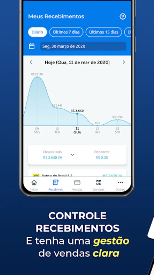 Manage sales made on your card machine and control receipts in a simple way. Track your sales in real time: access information on receipts for the day and future payments from customers.