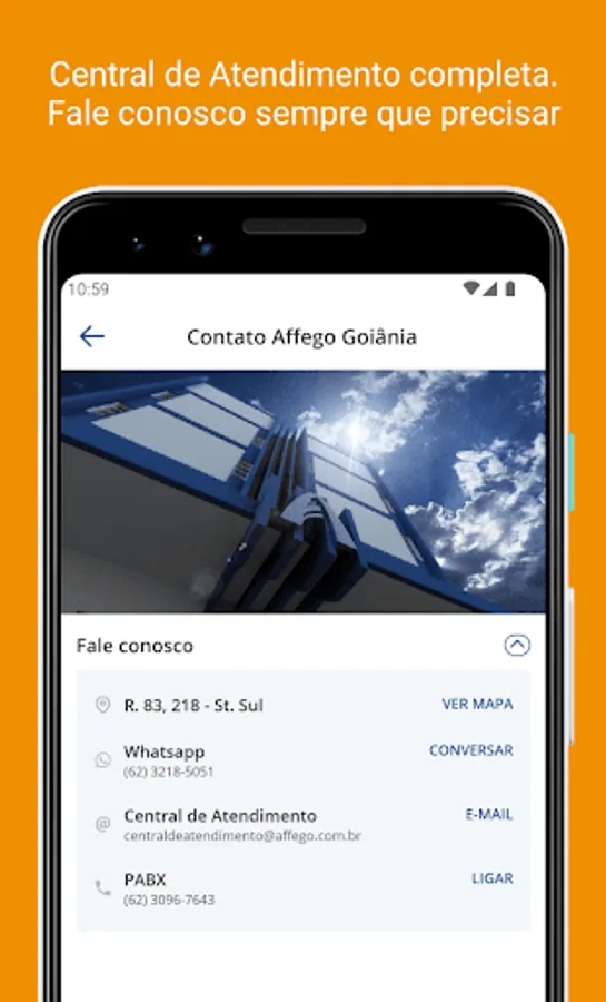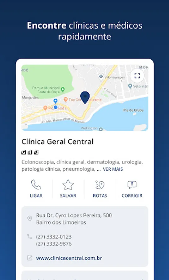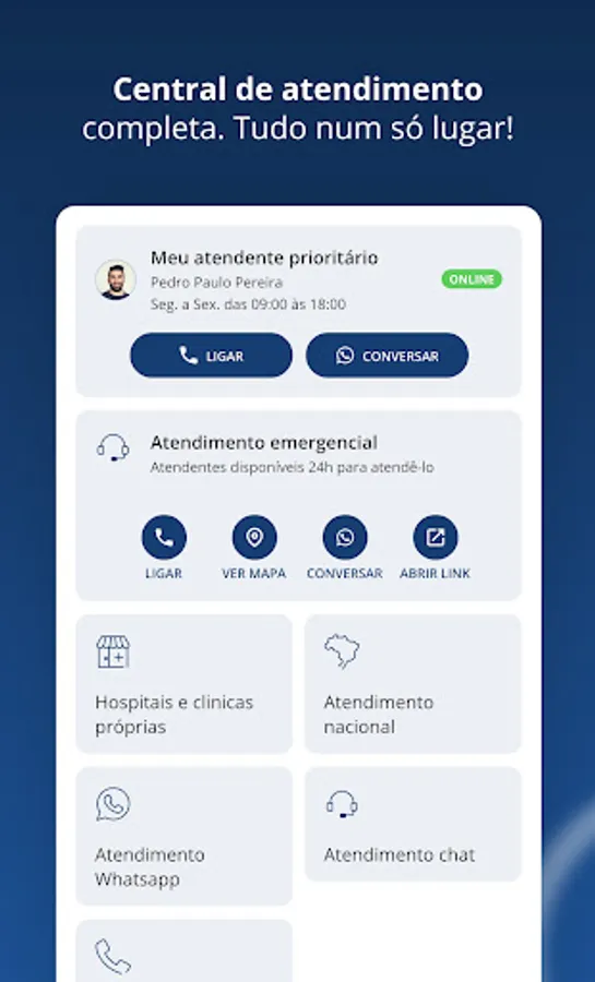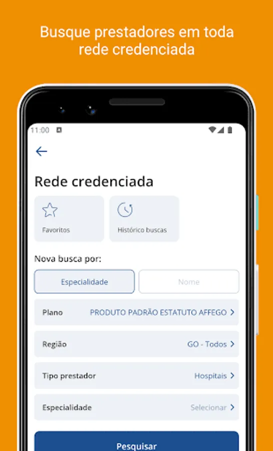 Affego health guide. With a simple and intuitive interface, it identifies doctors, clinics, laboratories, hospitals and other health establishments closest to the user, according to the contracted plan.