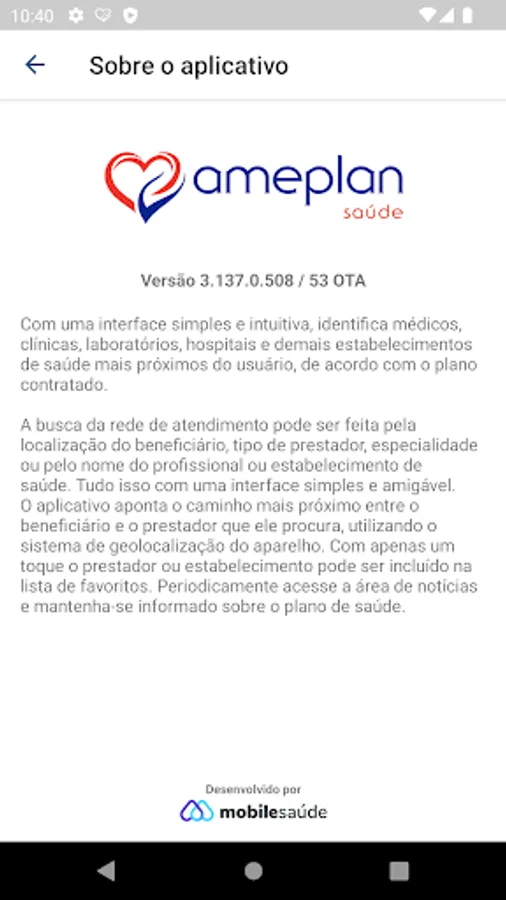 The search for the service network can be done by the location of the beneficiary, type of provider, specialty, type of plan or by the name of the professional/health establishment. All this with a simple and friendly interface. The application points the closest path between the beneficiary and the provider he is looking for, using the device's geolocation system. With just one touch, the provider or establishment can be added to the favorites list. Periodically access the news area and stay informed about the health plan.
