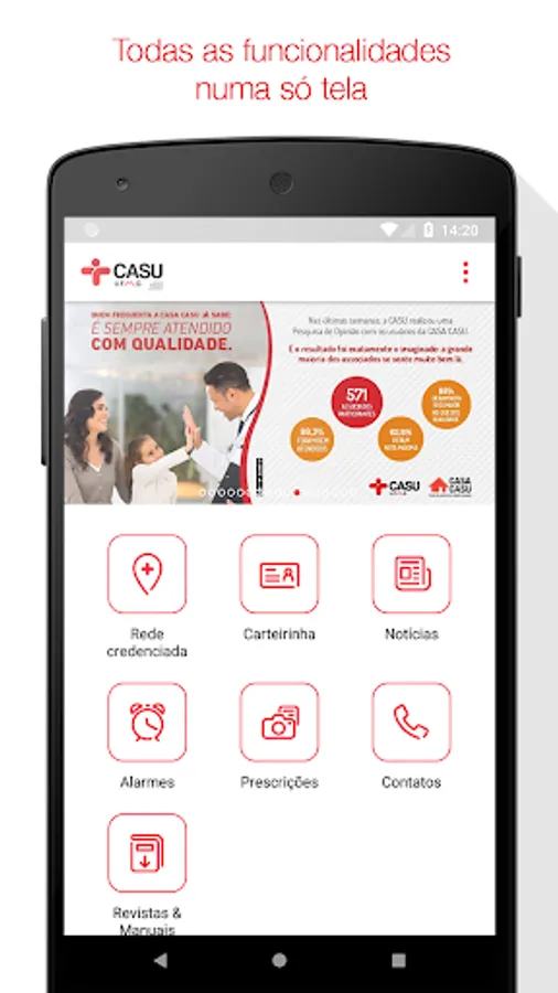 Guide to Health Casu. With a simple and intuitive interface, identifies doctors, clinics, laboratories, hospitals and other health facilities closer to the user, according to the plan.