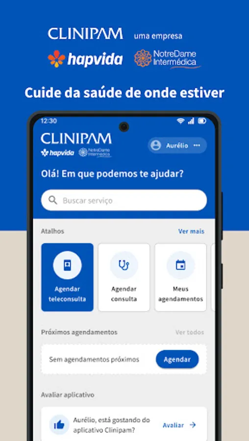 Clinipam health guide. With a simple and intuitive interface, it identifies doctors, clinics, laboratories, hospitals and other health establishments closest to the user, according to the contracted plan.