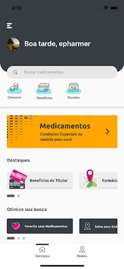 With the epharma app you have fast, secure access and have several advantages, such as virtual cards that facilitate your access to medicines and discounts, your benefit usage history, your balance limit and also helps you to locate the pharmacy nearest to make your purchases.