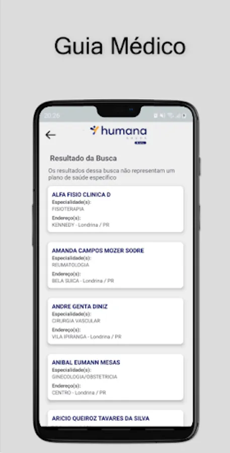 Humana Sul Health Guide. With a simple and intuitive interface, it identifies doctors, clinics, laboratories, hospitals and other health establishments closest to the user.