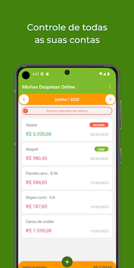 Control your receipts and payments in the month, organizing them by date and seeing the total balance for the month, all in a simple and practical way, very safe and online.