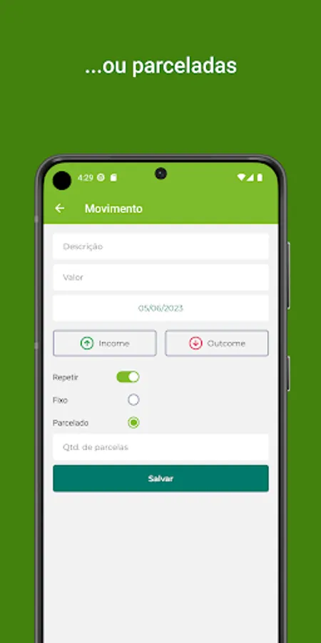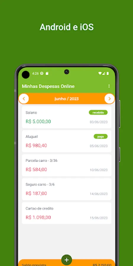 The app also allows you to record future receipts and payments (fixed or in installments), making it possible to "browse" through the months and see the balance forecast for future months and see the history of past months.