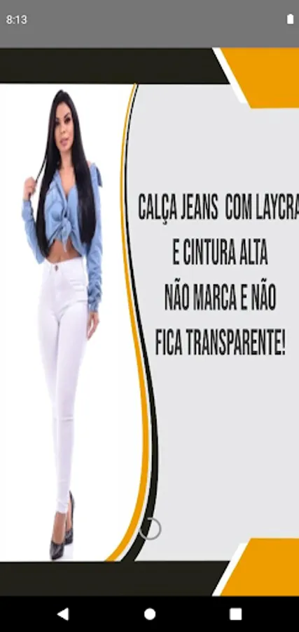 Speaks seriously! Every woman has always dreamed of having her body shaped without any type of surgical intervention, right? Know that this consumer dream can now come true using Jeans Branco's modeler jeans That's right! And most importantly, it's not a miracle, it's not a deception. The name of this is state-of-the-art technology!