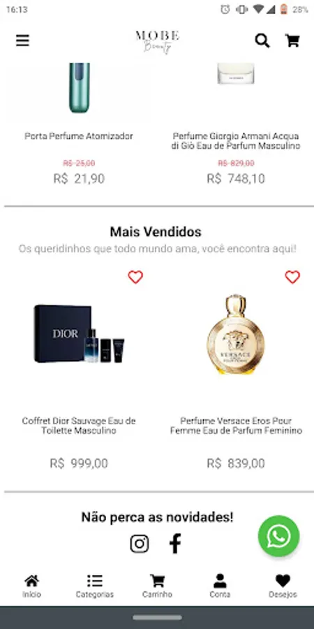 Mobe Beauty. Your perfumery in the palm of your hand whenever and wherever you want. The largest variety of original imported perfumes you can find here. Big brands like Carolina Herrera, Paco Rabanne, Dolce & Gabbana, Versace, Dior, Lancôme, Chanel and many more. Irresistible offers and promotions for you to rock!