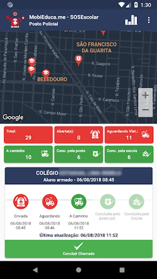 * The request of the occurrence will be done in the application MobiGestor by any member of the administrative body of the School;