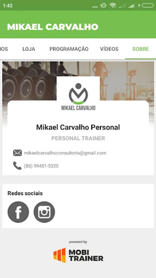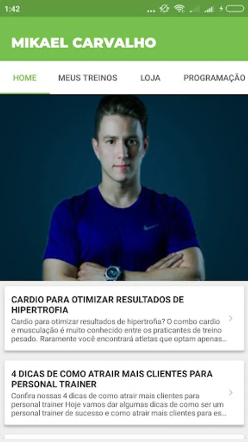 The Mikael Carvalho Personal application was created to make more dynamic the communication between the staff Mikael Carvalho and his students. The delivery of training and online counseling are done directly through the application with the integration of anamnesis questionnaires so that the training is done individually and individually.
