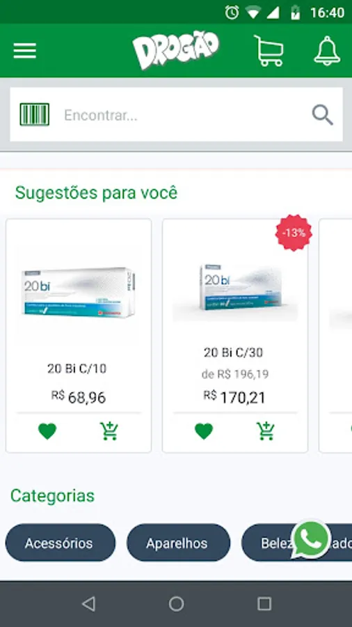 The Drogaria Drogão App allows you to access our entire mix of products in a simple and easy way. Easily search for products via text or barcode search, replicate your previous orders and many other features.