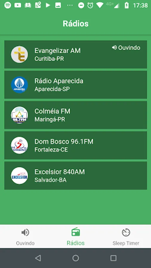 The main radios are here Evangelios AM 1060 and FM 90.9 radios from Curitiba-PR, Aparecida Radio-Aparecida-SP, Maringá Radio-Beehive Radio, Excelsior Radio 840 AM from Salvador-BA.