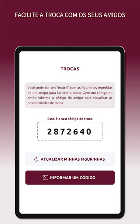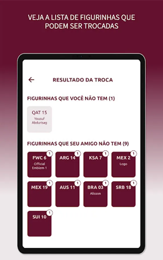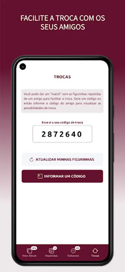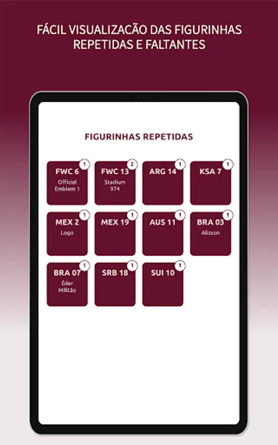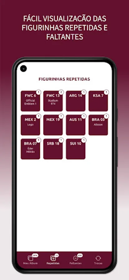 With the "My Album" app, you can easily control the stickers in your album, in addition to being able to simulate exchanges with your friends based on the repeated stickers