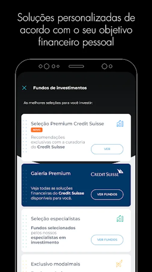 The new exclusive segment of modalmais bank was created for you to have a personalized management of your assets curated by Credit Suisse, one of the largest Private Bankings in the world.
