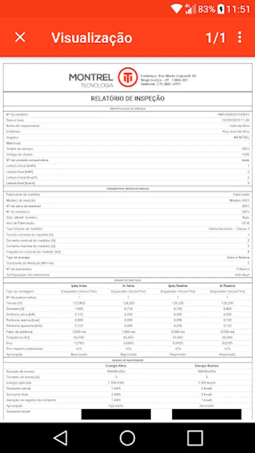 The ADR 3000 is an application for the operation of the eponymous register deviation analyzer, ADR 3000, a product designed to assist field technicians in making decisions regarding the need to remove and replace power meters. The application allows the user to perform real-time accuracy, dial and idle tests, can generate reports directly in the field, and can also share them through email, cloud and others, and even print. them in conventional or portable thermal printers.