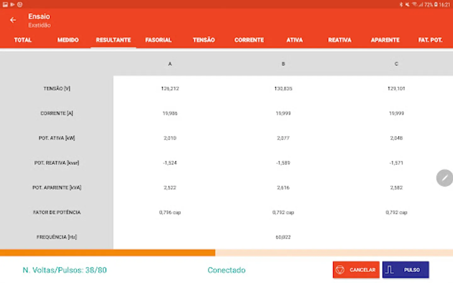 The ADR 9000 is an application intended for the operation of the registration deviation analyzer of the same name, ADR 9000 - Online Gauge, equipment designed to assist field technicians in making decisions regarding the need to remove and replace energy meters, through of accuracy tests, display and idle running with load conditions controlled in real time. The application allows the user to operate the equipment, being able to generate test reports directly in the field, as soon as they are completed. It is also possible to share these reports via email, cloud and others, and even print them on conventional printers or portable thermals.