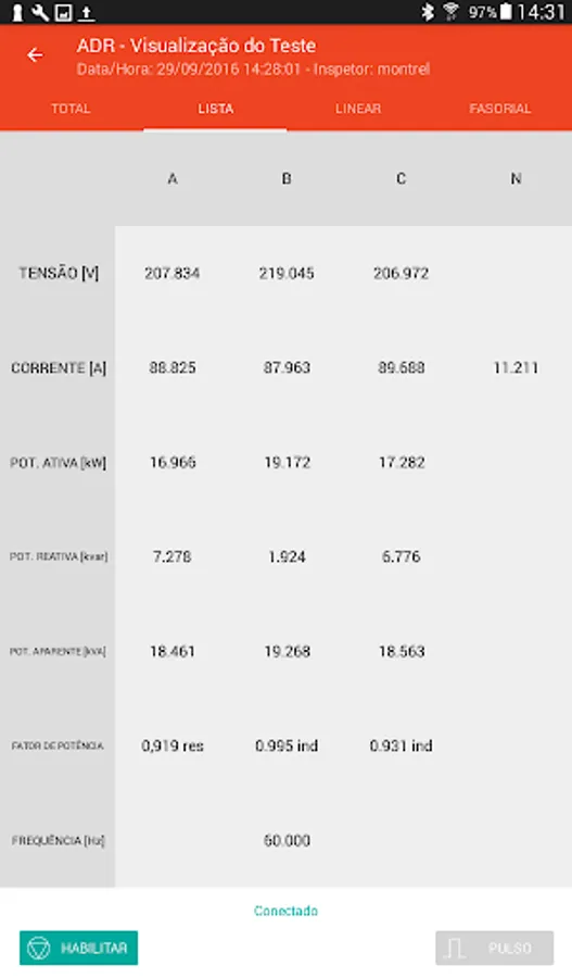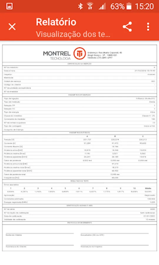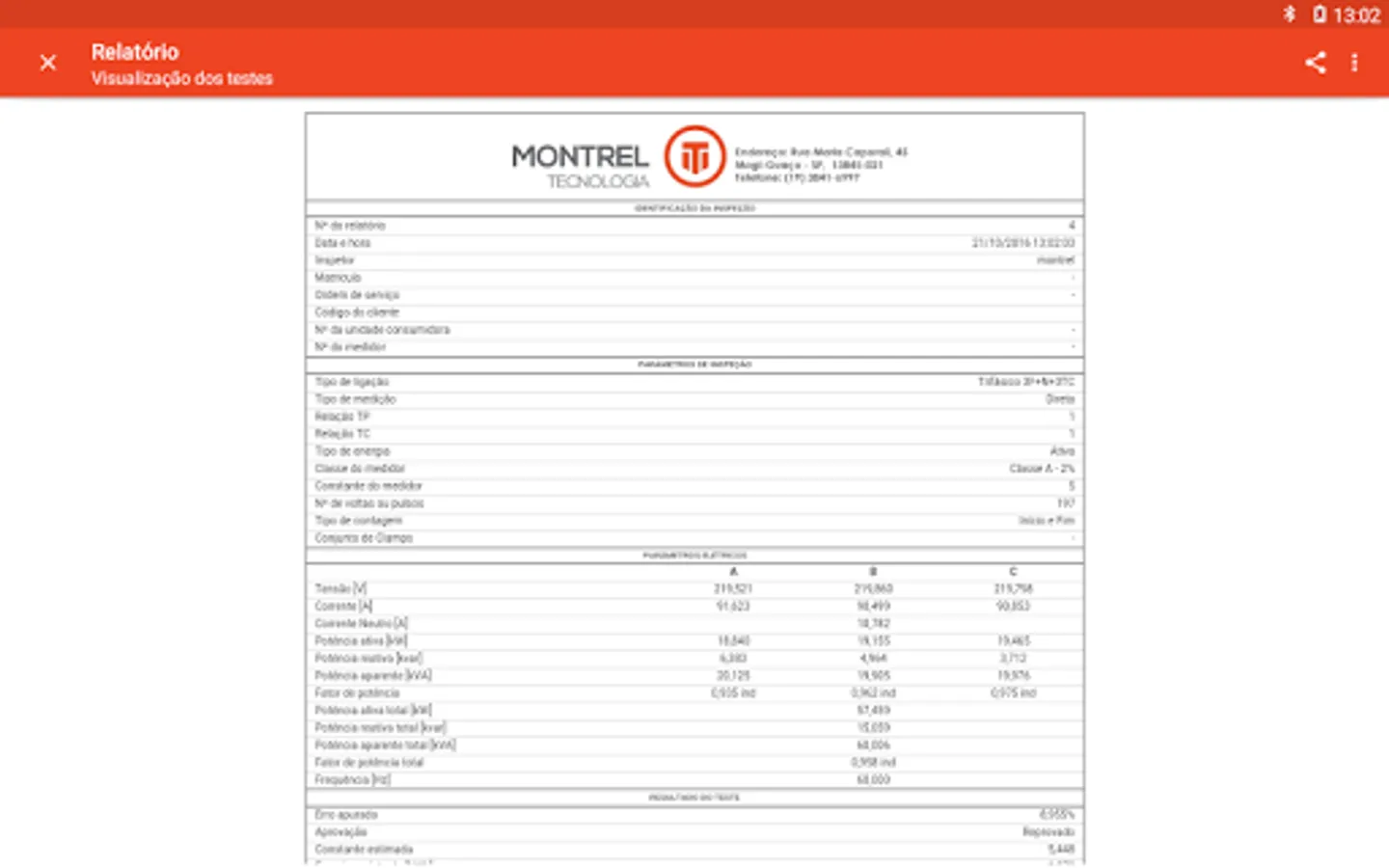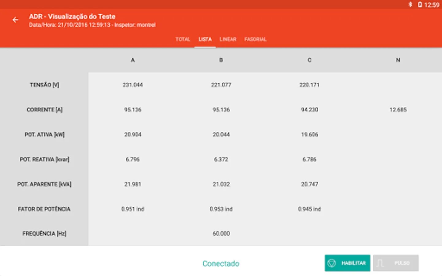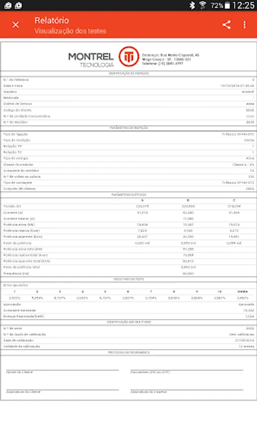 The ADR application Multi 4000, has tables and charts that enable users to analyze in real time the main features of the electric grid and in a few minutes, a detailed diagnosis of the operation of the inspected meter. It presents accurate information on the percentage deviation meter approval, network characteristics and description of the consumer unit, all formatted according to user preferences, and enabling the issuance and field reports printing through Zebra thermal printer, plus to record and store tests that can then be sent and stored for later analysis.