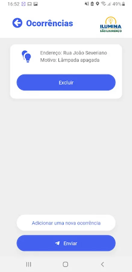 Application where the citizen can open Occurrences at lighting points in the city of São Lourenço da Mata, so that a team that will take care of the resolution is activated.