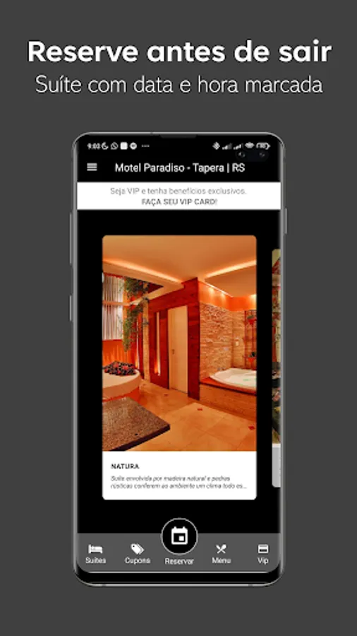 Download our App, register and earn a credit to use on your first reservation. You book your suite before leaving home, work or partying, accumulate discounts to use on your next stay and much more.