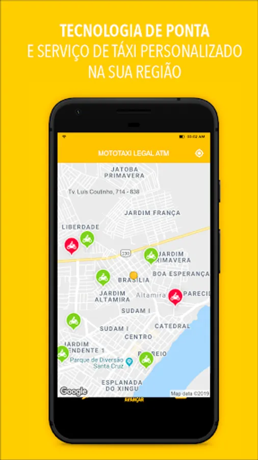 Our app allows you to call one of our motorcycle taxis and track the vehicle's movement on the map, being notified when it is at your door.