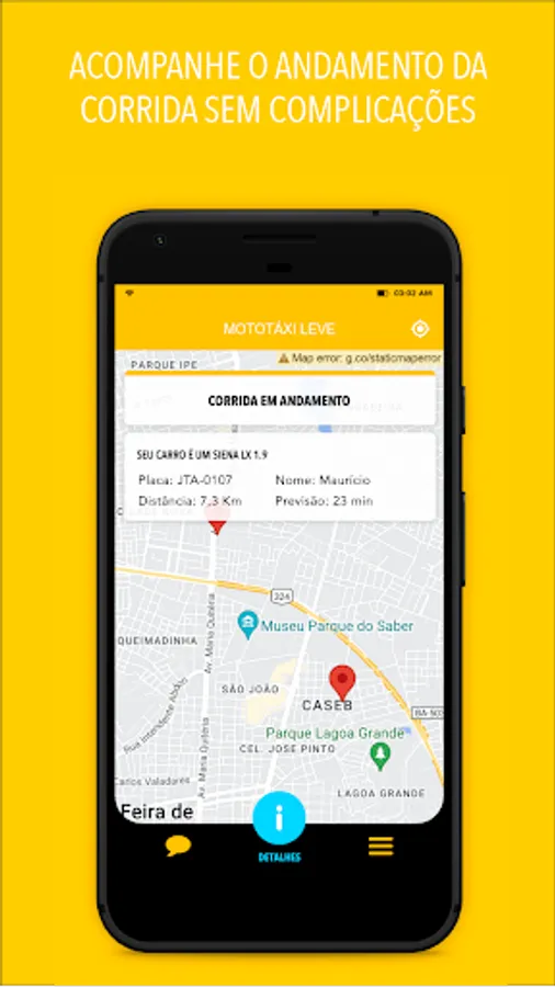 Our application allows you to call one of our motorcycle taxis and follow the vehicle's movement on the map, being notified when it is at your door.