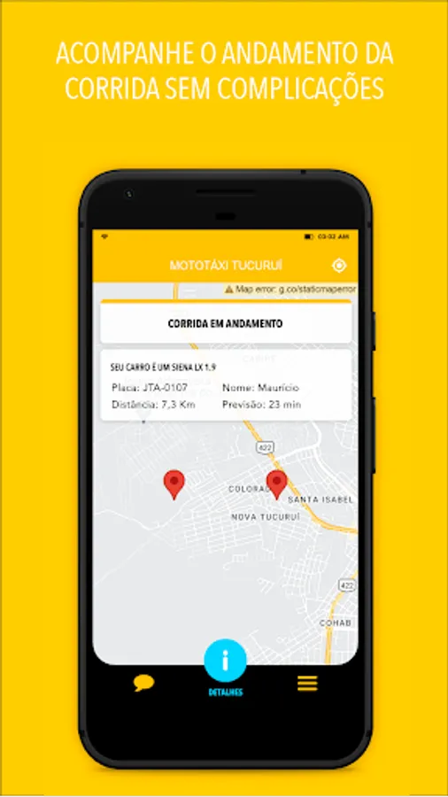 Our application allows you to call one of our motorcycle taxis and follow the vehicle's movement on the map, being notified when it is at your door.