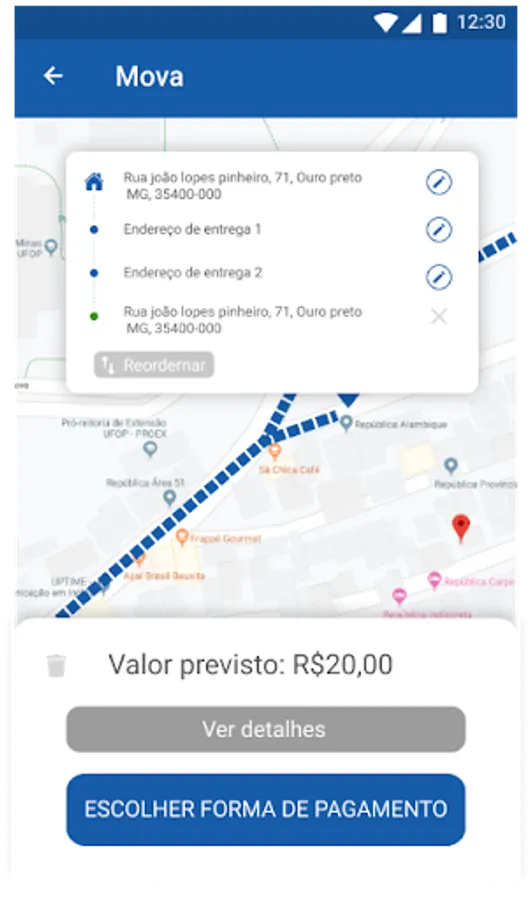 Mova is a technological platform that connects the user to a courier, to deliver documents, small and medium goods, with agility, security and fair price, in addition to providing services for banks, notaries, dispatches at airports, etc ...