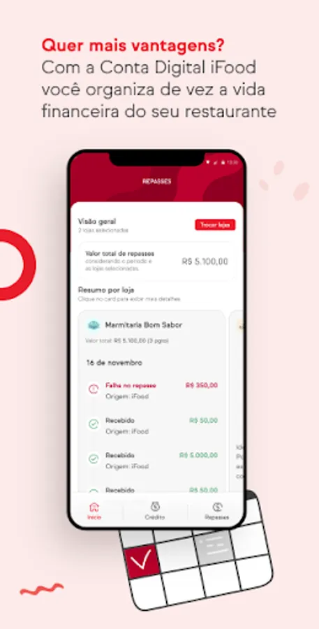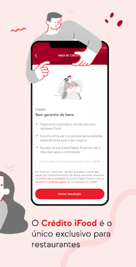 ▸Simulate and contract credit** online for your business with lower rates for iFood partners;