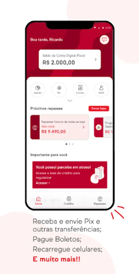 Download the iFood Digital Account and have the financial management of your business just a few clicks away! Here you can do everything you need: you have an easy view of the iFood sales transfer area to plan better and even use banking services* such as sending and receiving Pix and TED, pay bills, participate in exclusive promotions and a lot more! All online and on an uncomplicated and secure platform.
