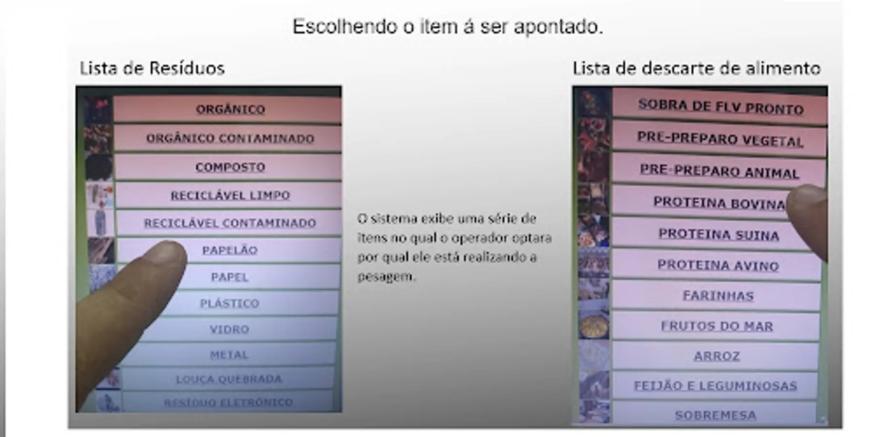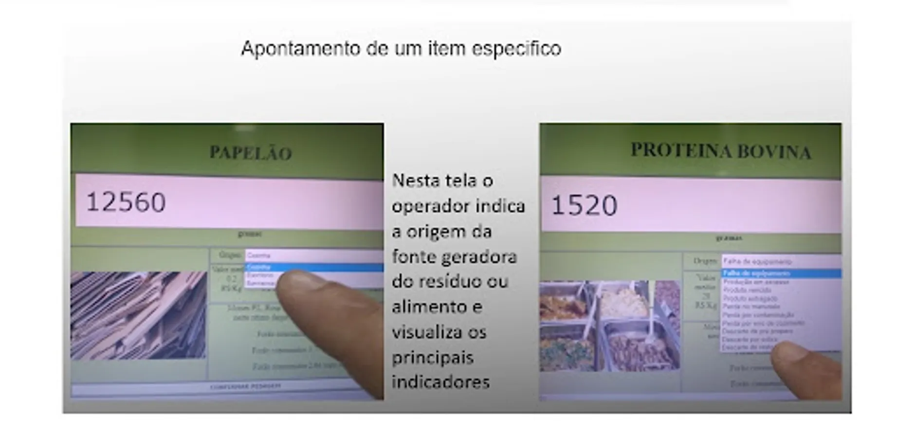 The purpose of this application is to collect data on waste generation and disposal, and it is possible to integrate the application directly with a scale, then weighings are carried out and transferred directly to a digital platform, where this data generates sustainability reports, the data can also be inputted manually by the operator who visualizes the scale value, chooses which generator group the waste belongs to and records the data.