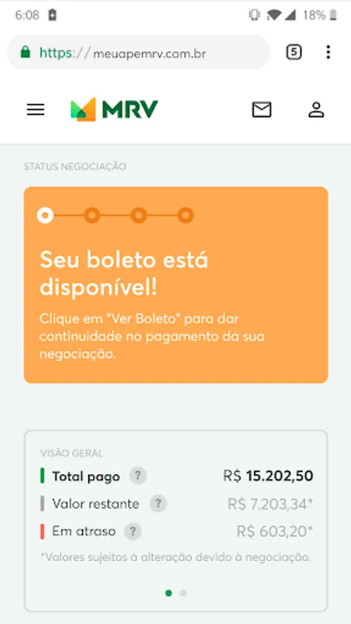 Meu MRV is an application that allows MRV Engenharia customers to closely monitor everything related to their apartment. Through it, it is possible to view the progress of the work, ask for a duplicate of slips, consult the extract, request technical assistance, talk to our virtual attendant to answer questions and much more. In addition, at each event or important announcement about the work, the client will receive news within the application.