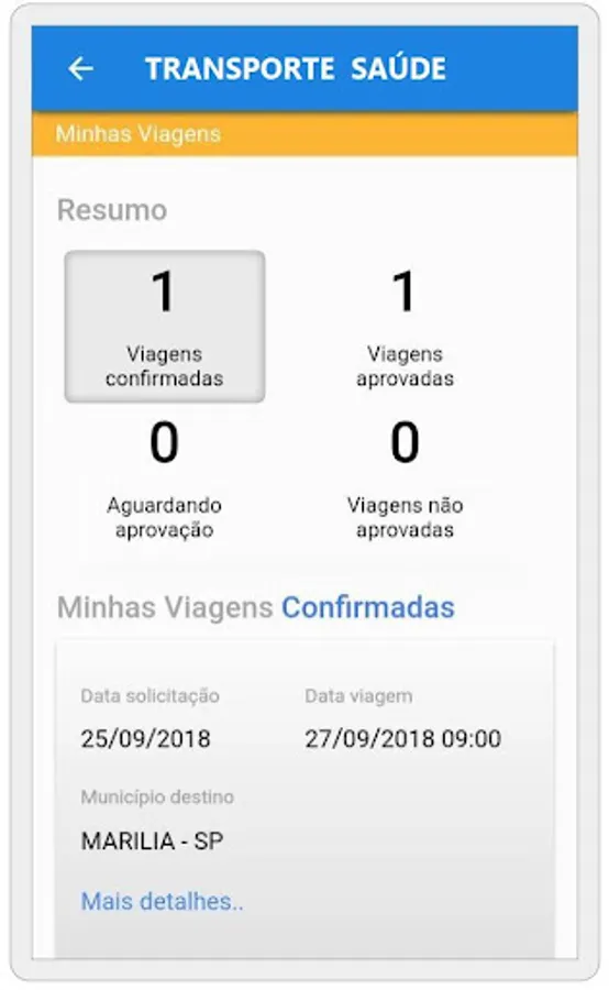 Its main objective is to make requests for scheduling the trip, allowing the follow-up of schedules, trips made and anonymous evaluation of the service provided.