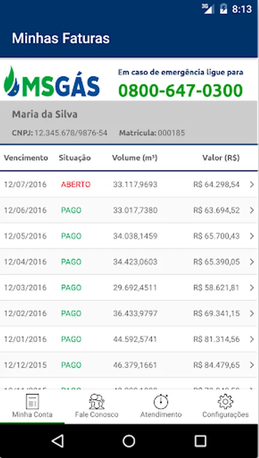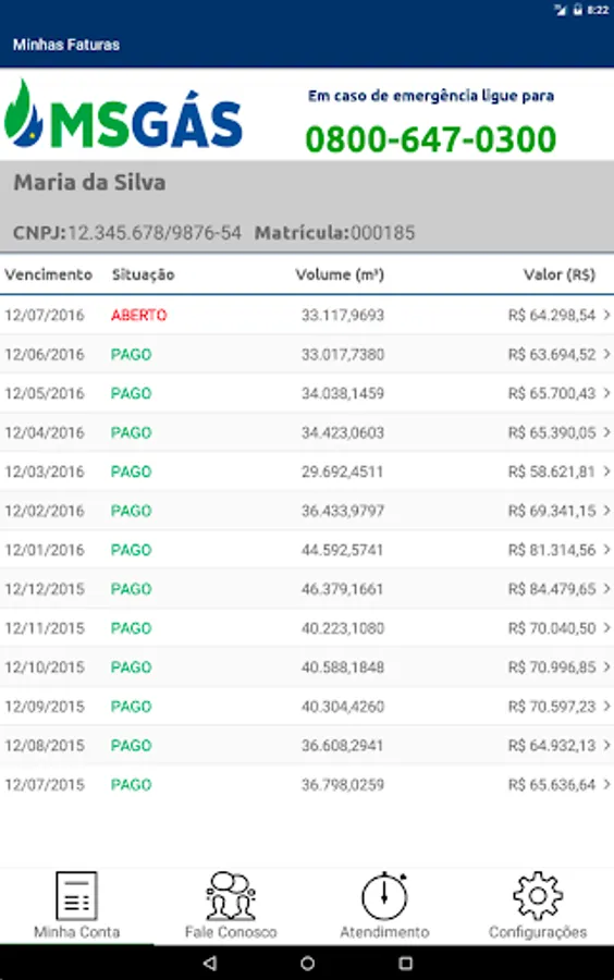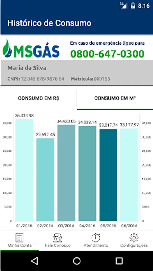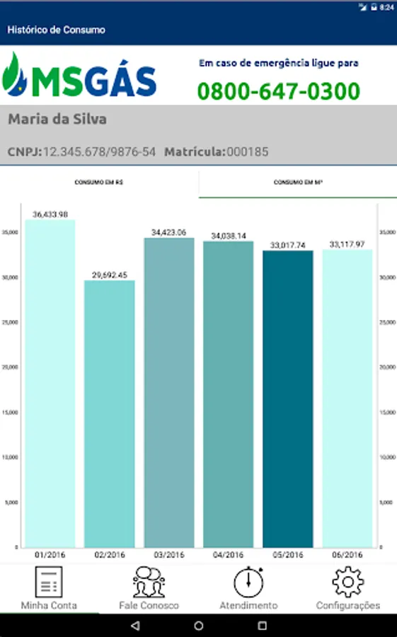 - Consumption History: view a chart with a history of consumption in value and volume of the last 6 months;