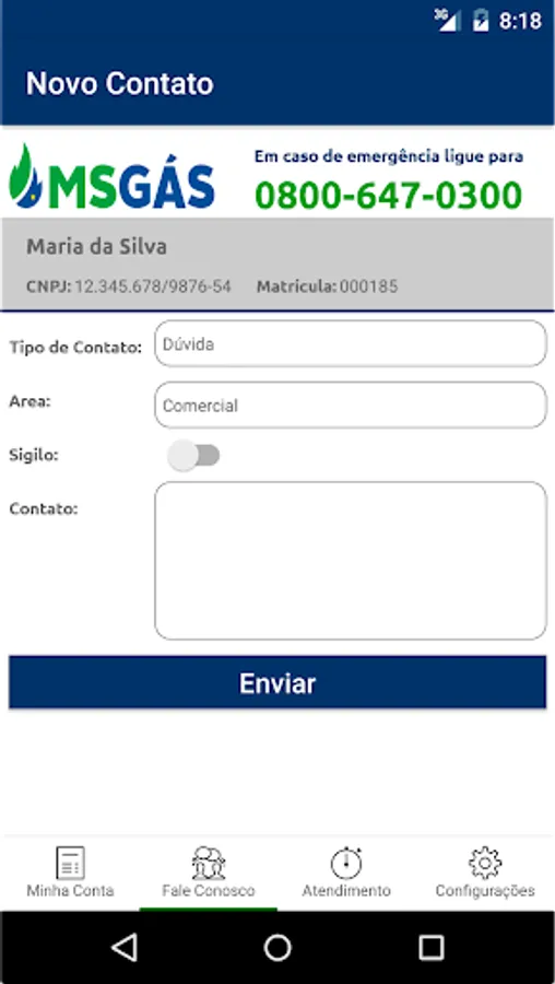 MSGASApp is an application developed by MSGÁS in order to provide the following services to its customers: