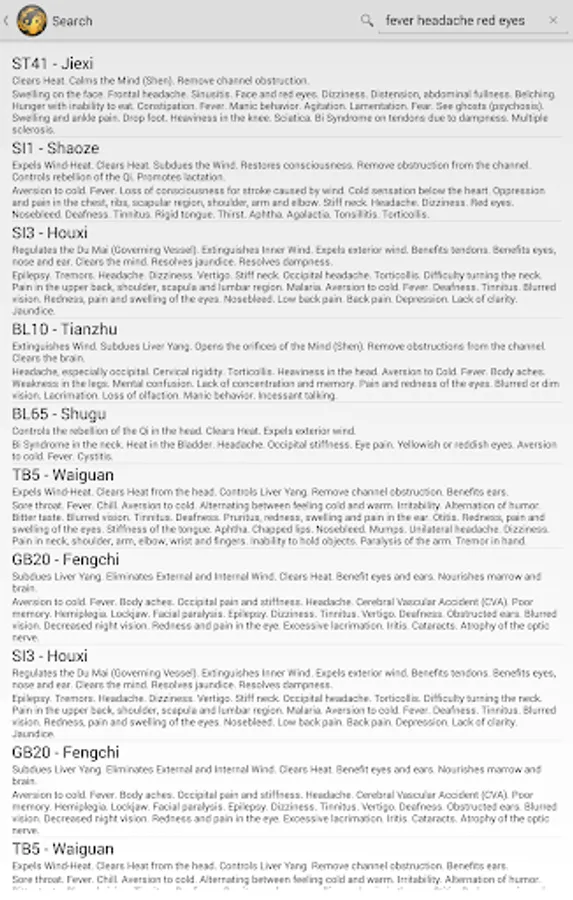 Acupuncture Assistant is more than an Acupuncture Point Atlas, it has a quick search where you can look for any information like signs, symptoms, desired point actions and instantly has suggestions of the most adequate points for the treatment.