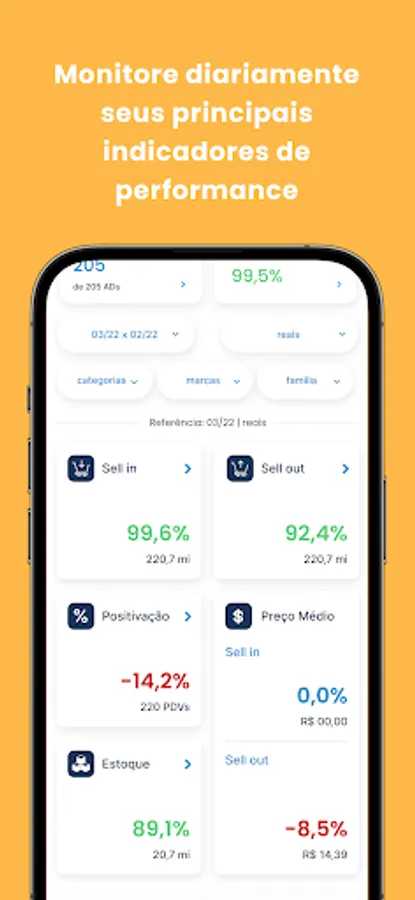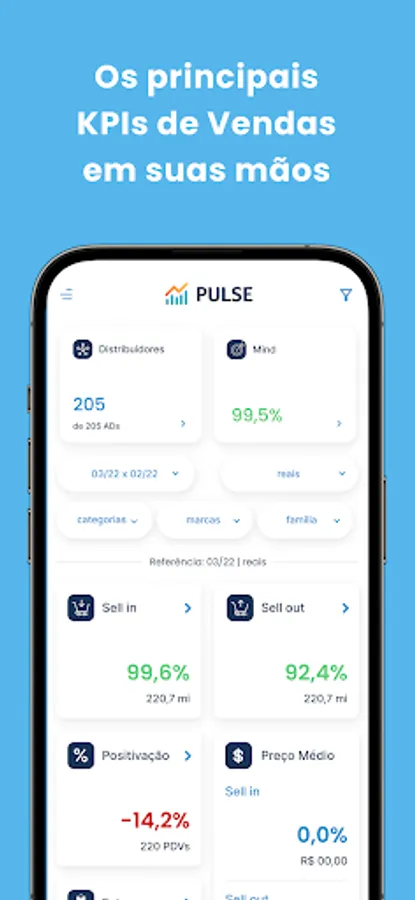 Sell in, Sell out, Positivation, Average price and Inventory numbers.