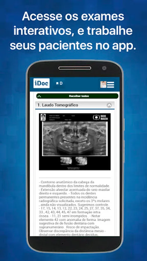 iDoc is a system on the internet where you manage your patients' data that are practical. It is the system most used by dentists in Brazil. Millions of images, exams, medical records and other data are accessed daily.