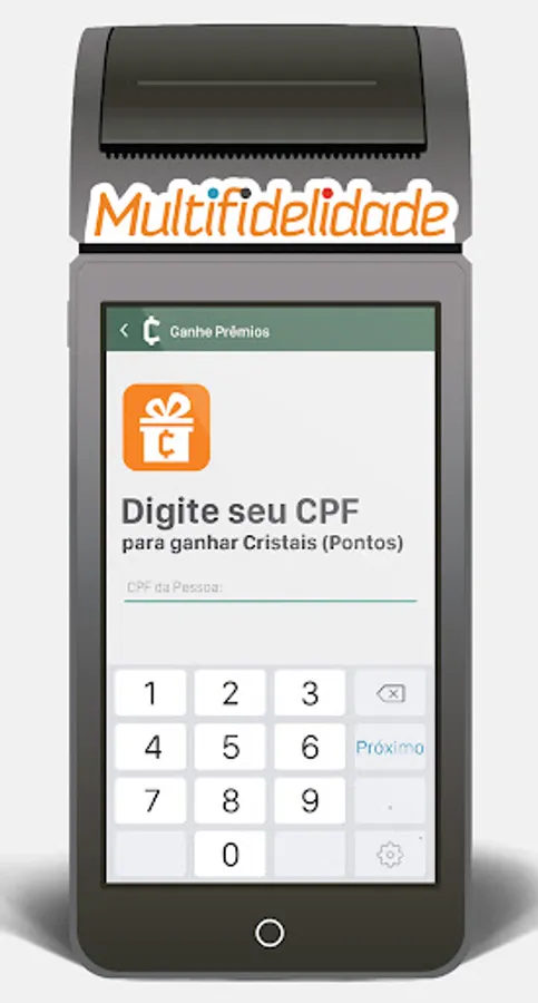In the Partner Companies network, request that payment be made through the Multifidelity Machine and enter your CPF to earn Crystals (points).