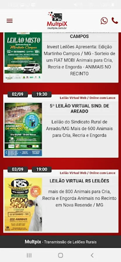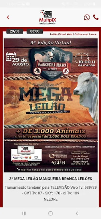 Multpix TV - Company specialized in broadcasting Rural Auctions, more than 10 years in the market. Download our app and stay on top of our auction schedule and follow our broadcasts live.