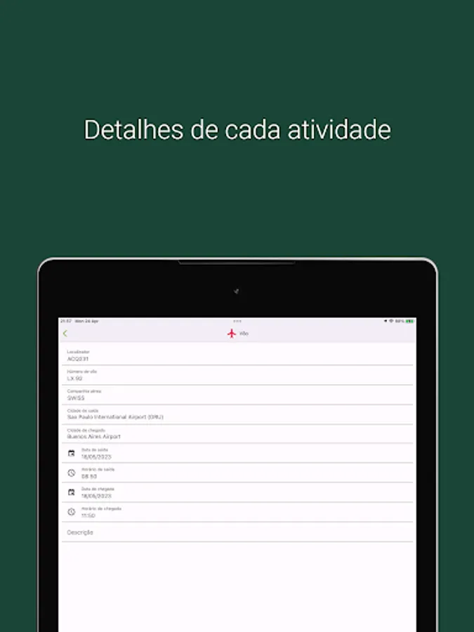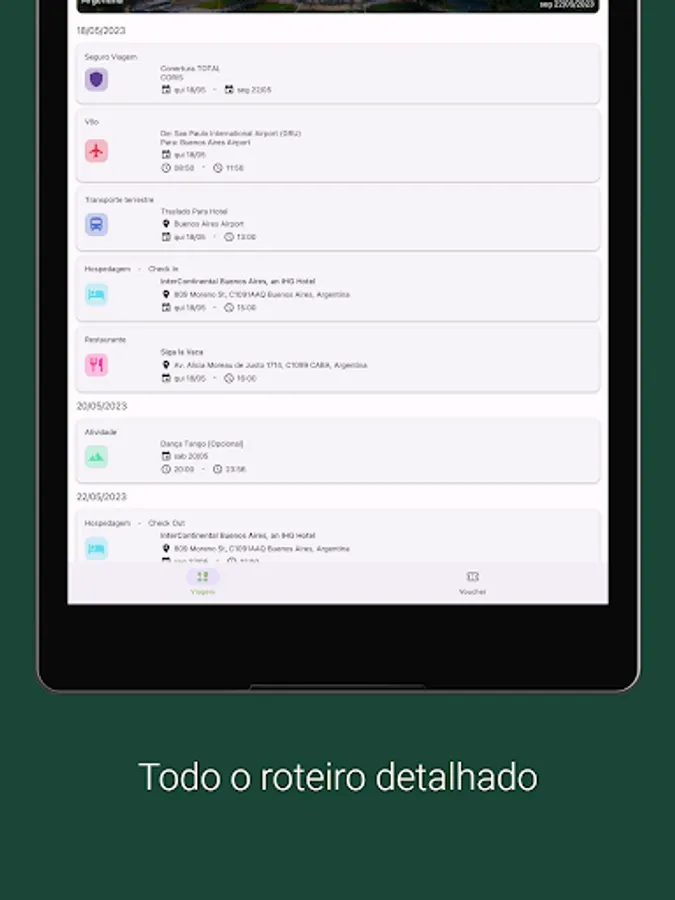 Munditur is a complete application to access travel information. With intuitive and easy-to-use features, the application allows users to view all the details of their itinerary, including information about flights, accommodation, transportation and sightseeing, which are registered by travel agents in another system.