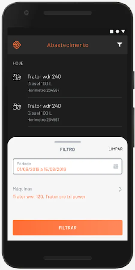 Register your machines and implements, being able to register corrective maintenance and preventive maintenance plans.