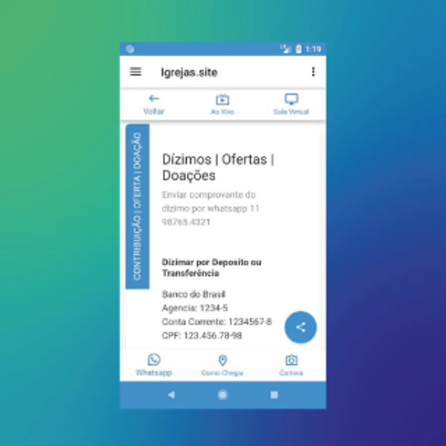 A button to speak directly to the church's whatsapp.