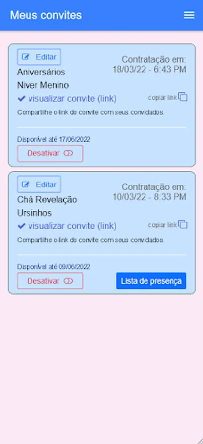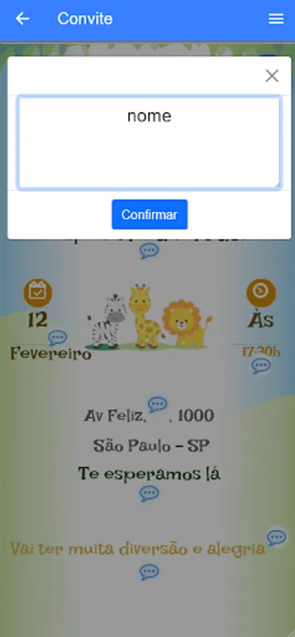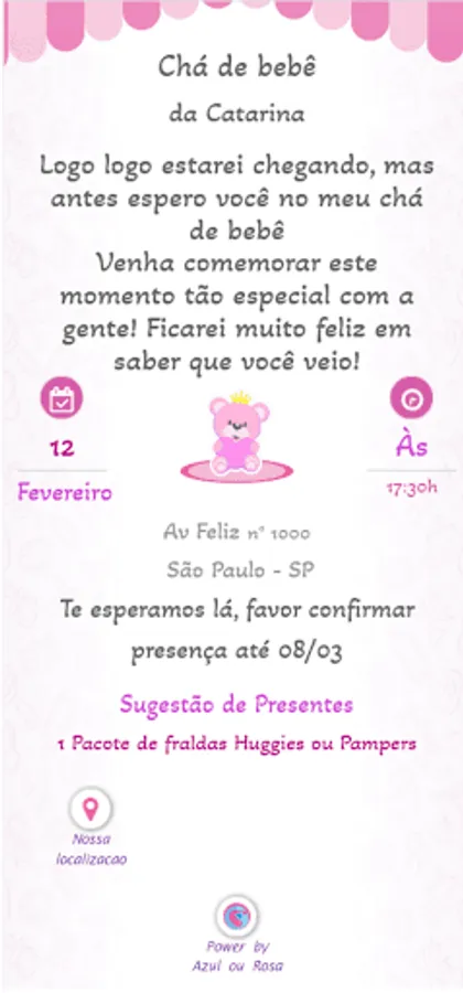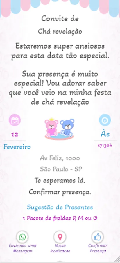 All invitation templates can be edited with your texts. Choose the best template you like and edit them. Then just share the generated link with your guests. You can send the link by whatsapp, email and among other platforms.