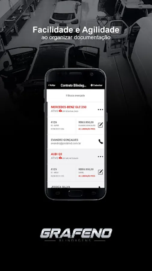 All GRAFENO customers can use the application and track the progress of their vehicle's armor, as well as access sales / hiring data.